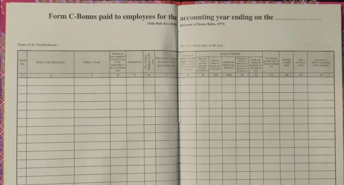 Combined Register for Form A, B & C | Employee Bonus Management Register: Form A, B, and C for Bonus Calculation & Surplus Allocation Under Payment of Bonus Rules 1975